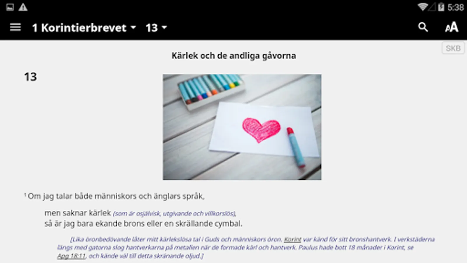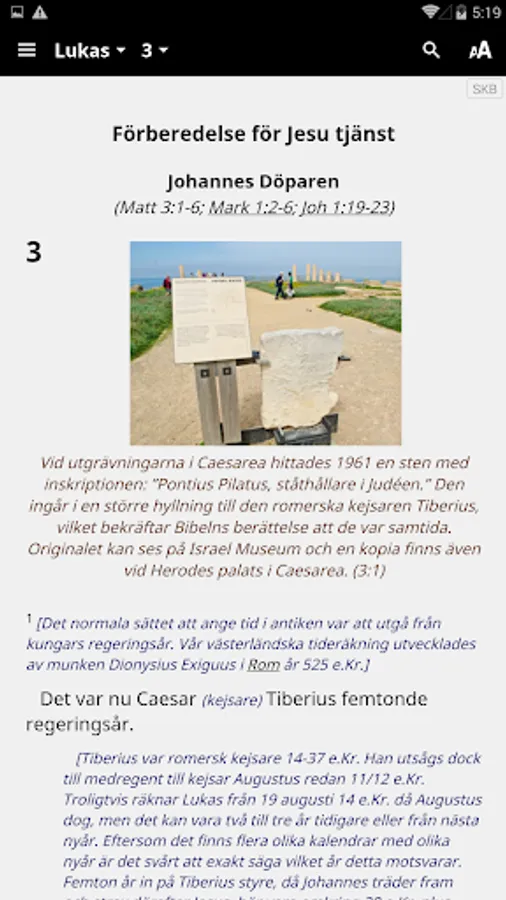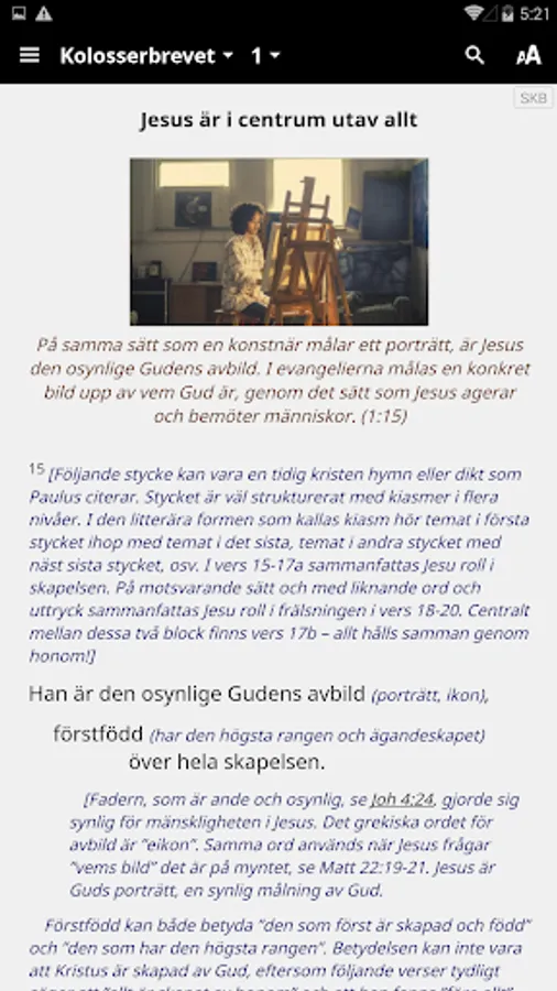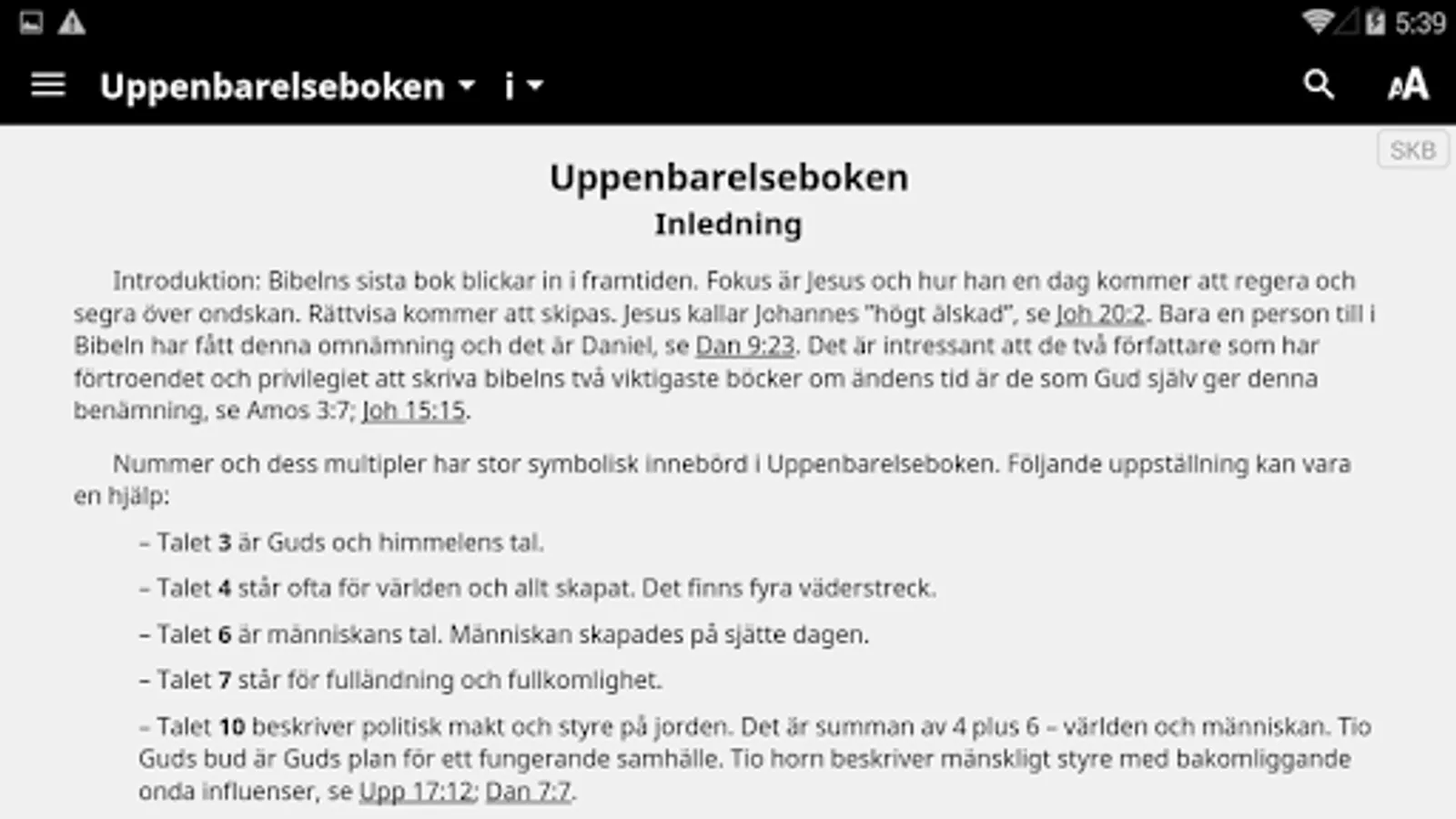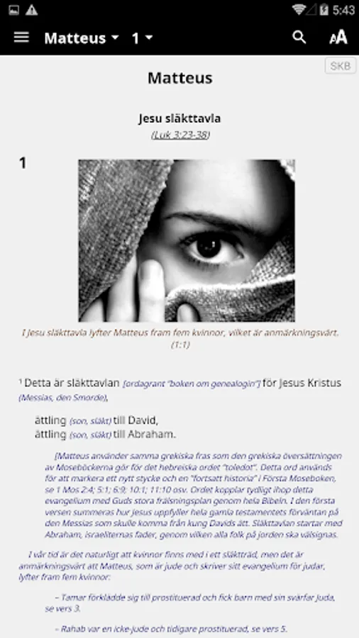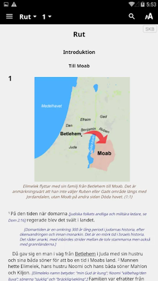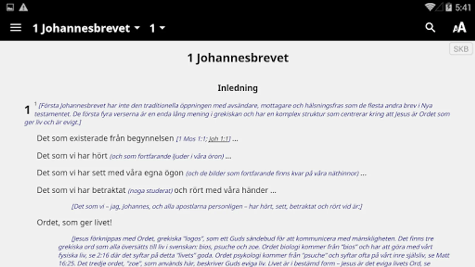 Swedish Nuclear Bible (SKB) is an expanded translation. Where necessary, use several Swedish words to convey basic text's full meaning. The goal is that a Swedish readers in the 2000s should benefit from the Bible, as far as possible in the same way as when it was written.