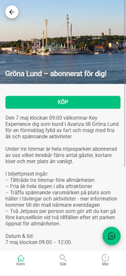 For you who are a Private Banking customer at Avanza, the digital experience service KEY is offered. Here you will find everything from premium tickets, sold out concerts and previews of big films. You also have the opportunity to book unique adventure packages linked to sports, fashion, food, and pretty much anything that can make your leisure more enjoyable. The service is free but you pay when you buy tickets of any kind.