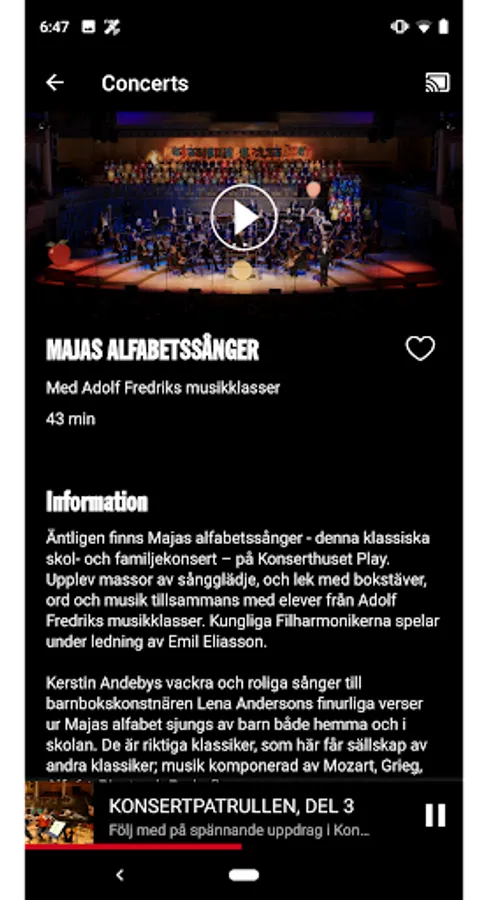 Experience world-class concerts, whenever you want, wherever you are, with the streaming service Konserthuset Play. All for free.
