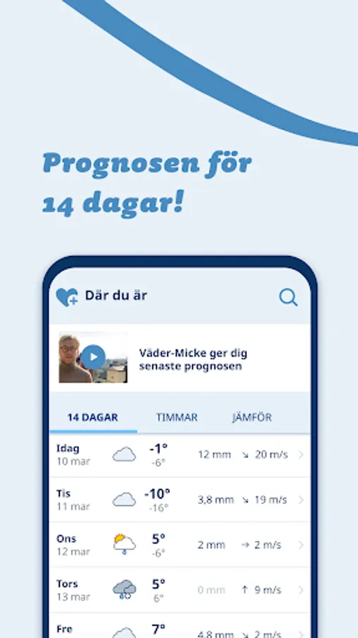 We also have the weather in charts (turn the phone to landscape mode), weather maps for Sweden showing precipitation, clouds and temperature.