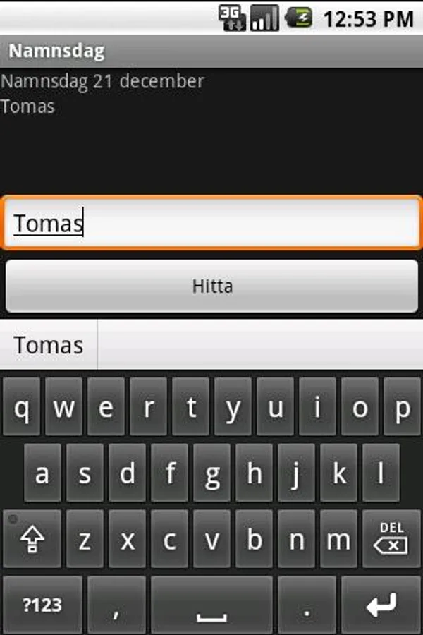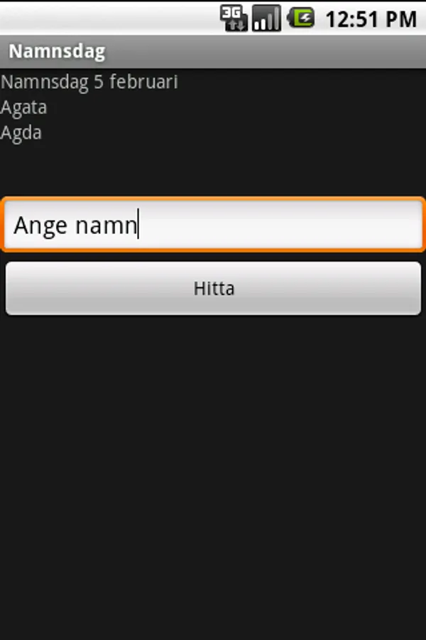The program presents the name that has name day on the day the application is started. You can also search by name to find when a certain name has name day.