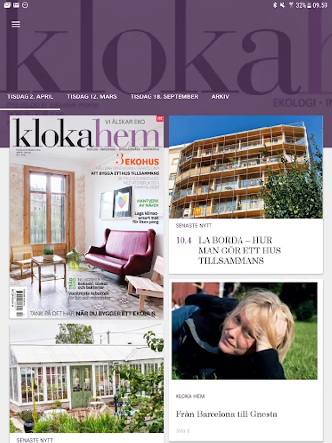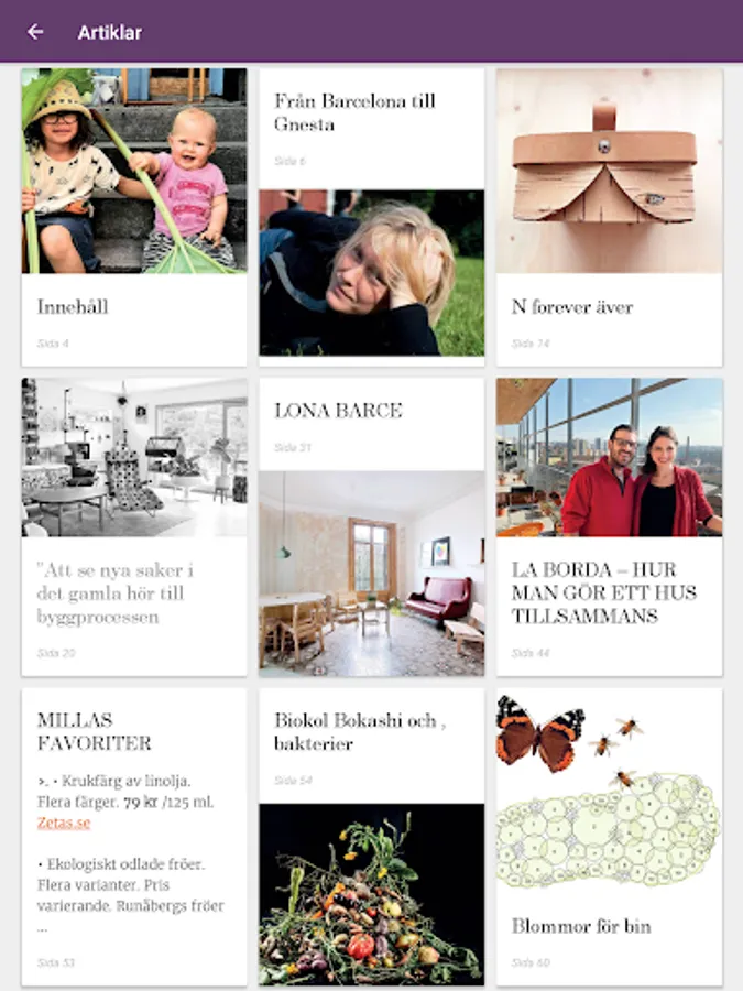 We show environmentally friendly furnishings and climate-savvy choices to the home. But also new exciting houses, built in terms of climate and sustainability. We recycle, we find new ones, we are looking for the heroes who dare to go before. And we discuss food that is not only smart but above all good. Against both stomach and heart.