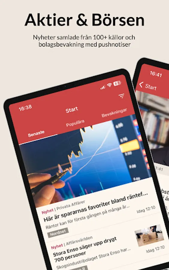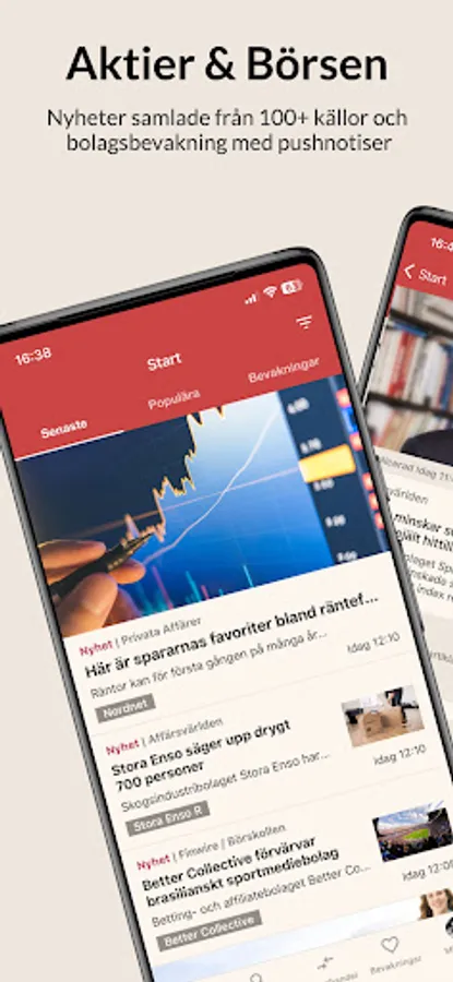 - News: Affärsvärlden, Dagens PS, Private Affairs, Breakit, Finwire, Redeye, Realtid, Aktiespararna, New issues, etc.