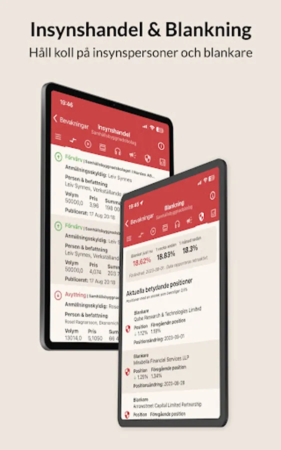 - Insider trading & Short selling: Insider trading and short selling reported to the Swedish Financial Supervisory Authority