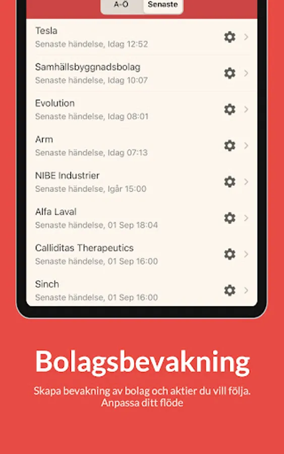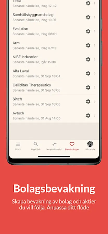 Create coverage of shares and companies you want to follow and we will send you a push notification when one of your shares is mentioned in the media.