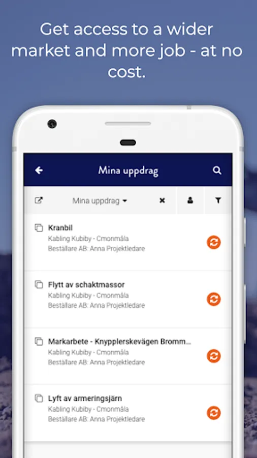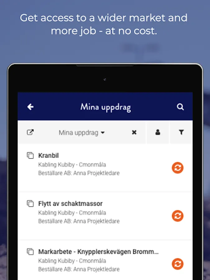 Med vår app kan både du som kund- eller leverantörsanvändare få tillgång till vårt unika system direkt i din iPhone eller iPad! Som leverantörsanvändare kan du i appen bland annat ta emot förfrågningar på nya uppdrag, se alla aktuella uppdrag, skicka och ta emot meddelanden och skapa digitala transportsedlar. Som kund kan du bland annat följa utförandet av uppdrag i realtid, hantera dina projekt, göra beställningar och kommunicera direkt med leverantörerna.