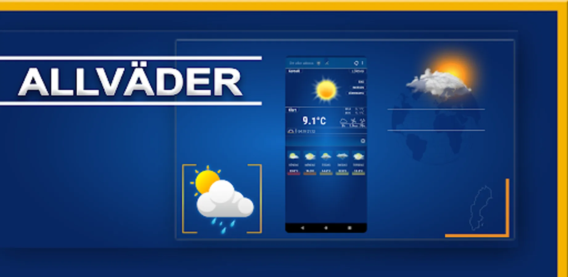 Väder Sverige har ett hundraprocentigt fokus inriktad mot att leverera väder prognoser kring vädret i Sverige med direkta leveranser av väderdata från SMHI. Appen tillhandahåller väderinformation där du antingen befinner dig eller vad du har ställt in väderappen att visa i realtid. Du kan välja dina aktuella plats eller ställa in appen på en ort som du önskar ha en väderprognos för. Du får du snabbt och enkelt en översikt direkt över vädret.