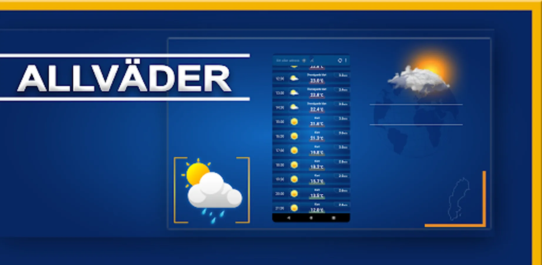 En app med fokus på väder prognoser för Sverige! - Väderappen är anpassad till att vara enkel att använda och att förstå. Syftet är att förse dig med väderprognoser där du befinner dig - helt automatiskt. Därutöver finns även valmöjligheten att även söka väderprognoser över hela landet genom att använda sökfunktionen.