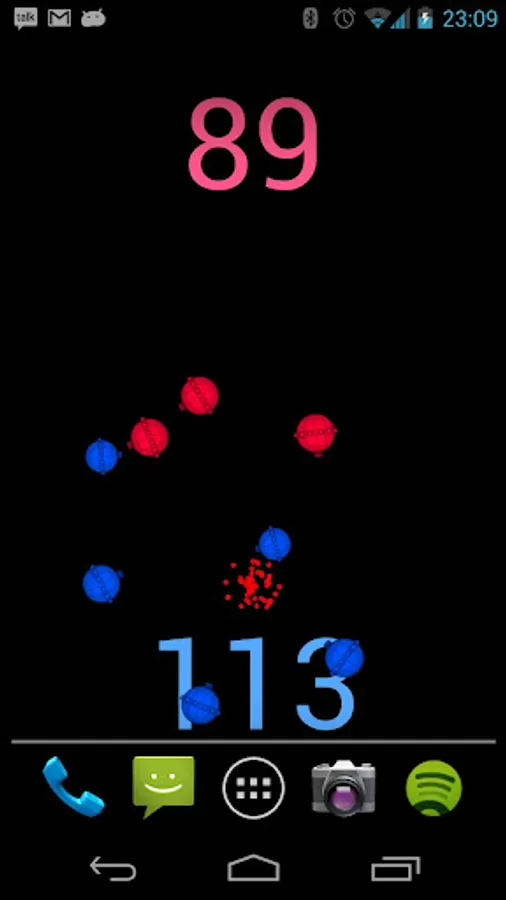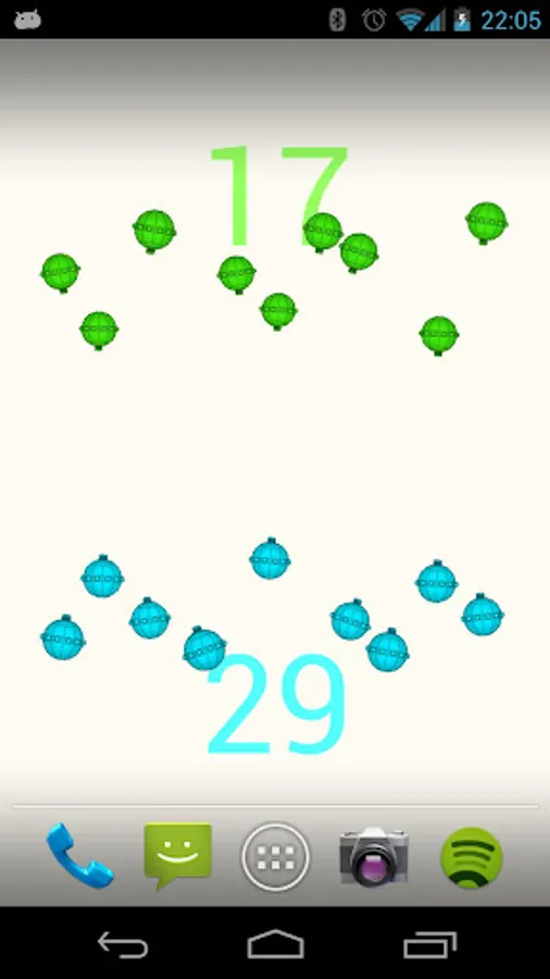 This is a live wallpaper featuring two teams of UFOs battling in short matches. When the wallpaper is installed, all UFOs are identical, but as they fight they'll evolve new strengths, weaknesses and a personality. Some will keep a safe distance from the weakest enemy while lobbing shots at it. Some might bull rush straight into the nearest enemy and some might just sit and wait for the enemy to come to them.