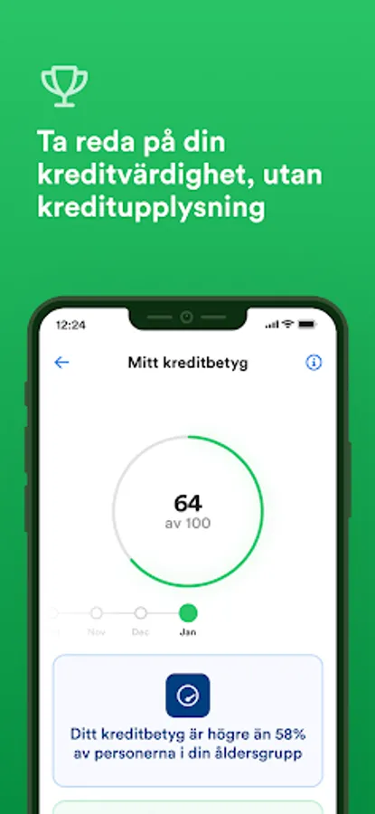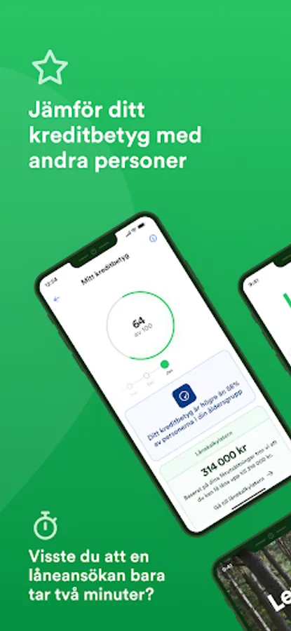 In Lendo's app, you can quickly see your credit rating and get an overview of your personal finances. Through our collaboration with Creditsafe, you can keep track of your creditworthiness in the app, without the credit rating being negatively affected. In the app, you can compare your credit score and income with others in the same age range.
