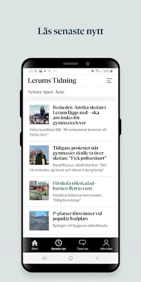 With Lerums Tidning's news app, you can easily keep up to date with the latest news and events in your local area. Download the app and choose which topics you want to receive push notifications about when something new has happened.