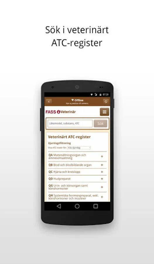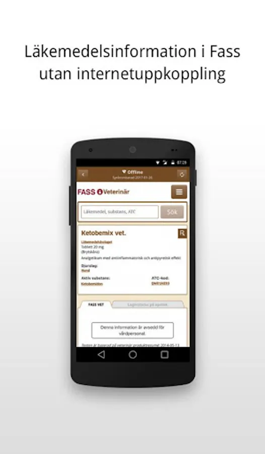 The app Fass Veterinary available as options for you in your role need to have access to Fass Vet. texts even without Internet. The app is not open to the public without the user will be active in the field of veterinary care.