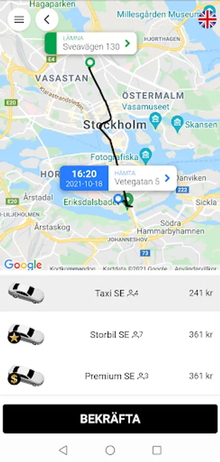 • Select Taxi, Premium or Large car. For Limousine Service, send an e-mail to support@limhamnshyrvek.se