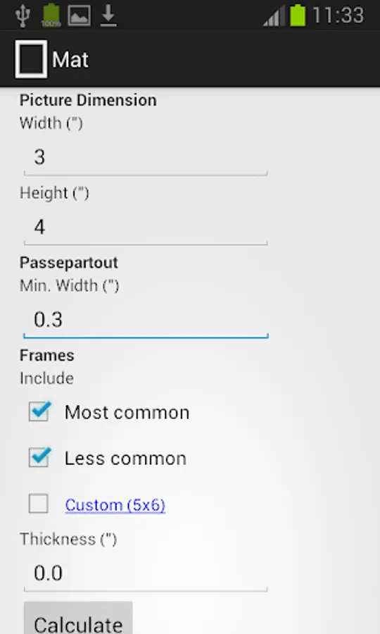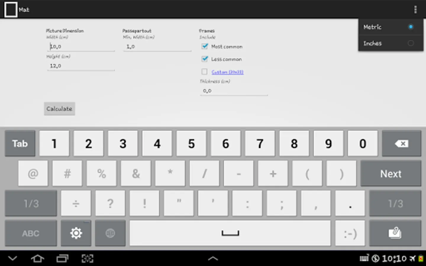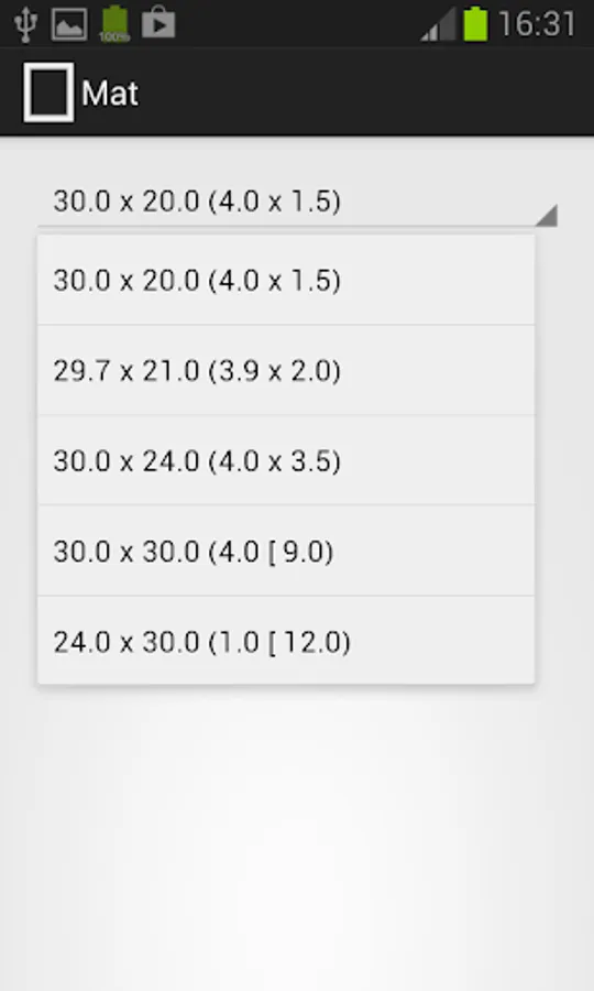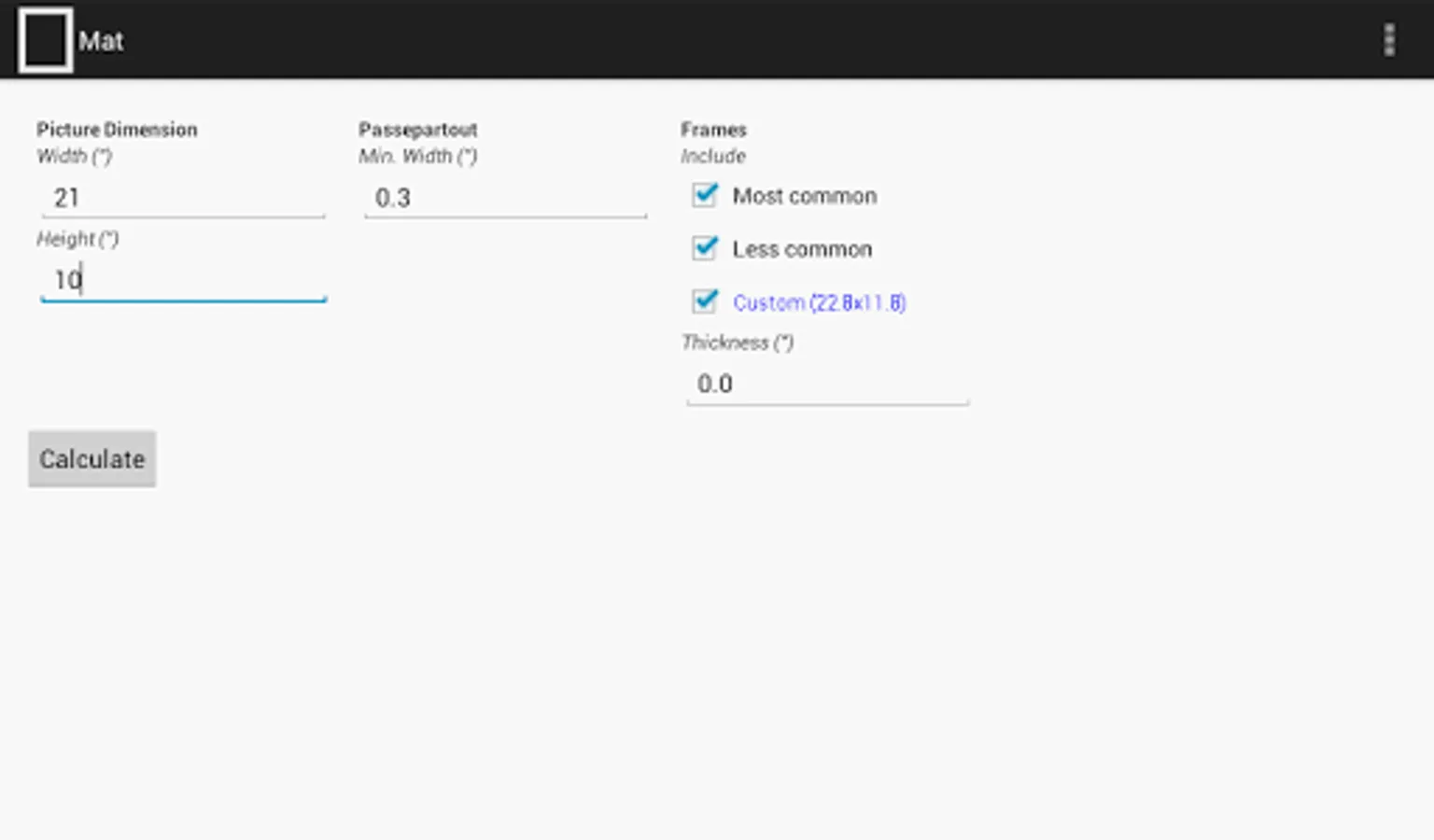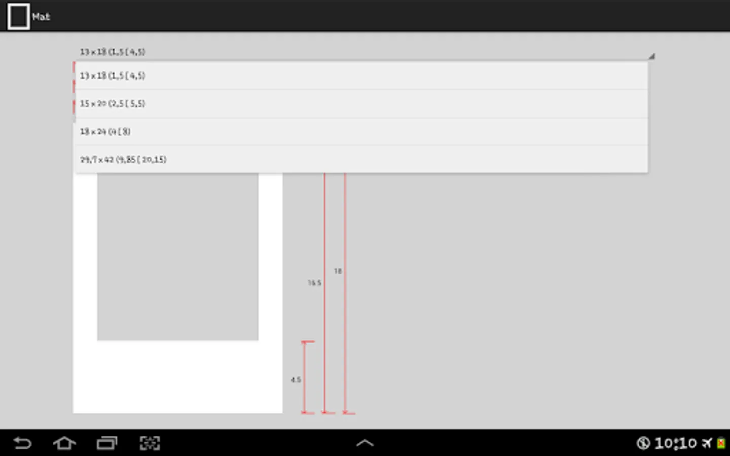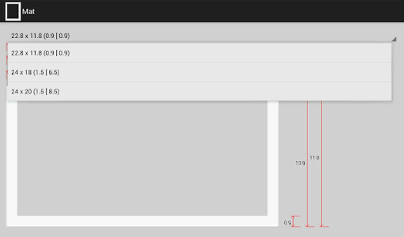 Ideally the software tries to keep the left, top and right sides of the passepartout equally large. The passepartout sides are presented beside each frame size for you to be able to see what options there are.