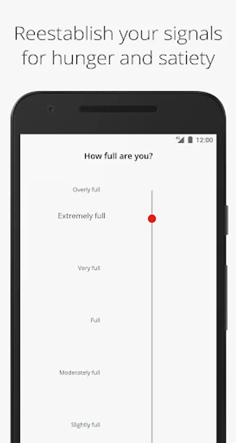 Periodically, you are asked to rate how full you feel. With the help of a second reference curve that appears on the screen, you learn to know how full you should be feeling over the course of a meal.