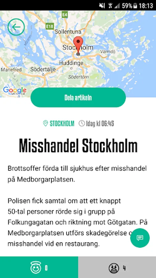 Crime is the app that lets you follow the efforts the police are doing in Sweden. You can sort the landscape or let the app choose all the events taking place near you. This app you a Beta and is still under development.