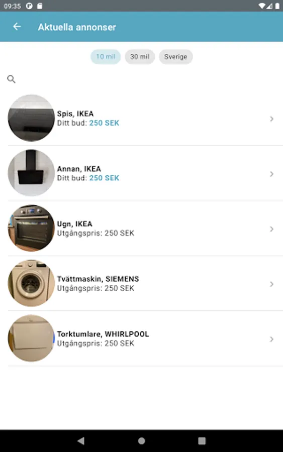 As a reseller, you can bid on uploaded products. Once you have won a bid, select the pick-up time. Contact the seller by phone or e-mail and then pick up the white goods.