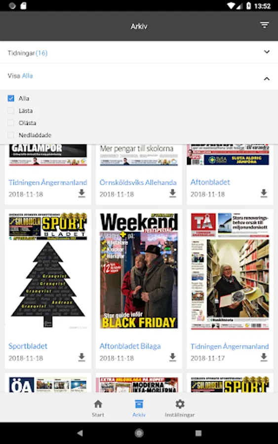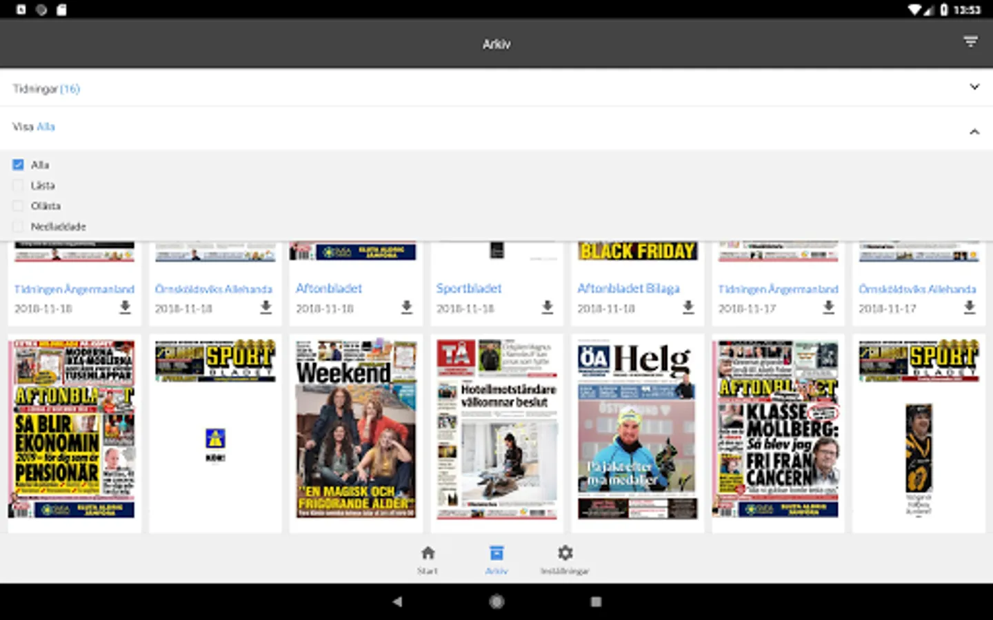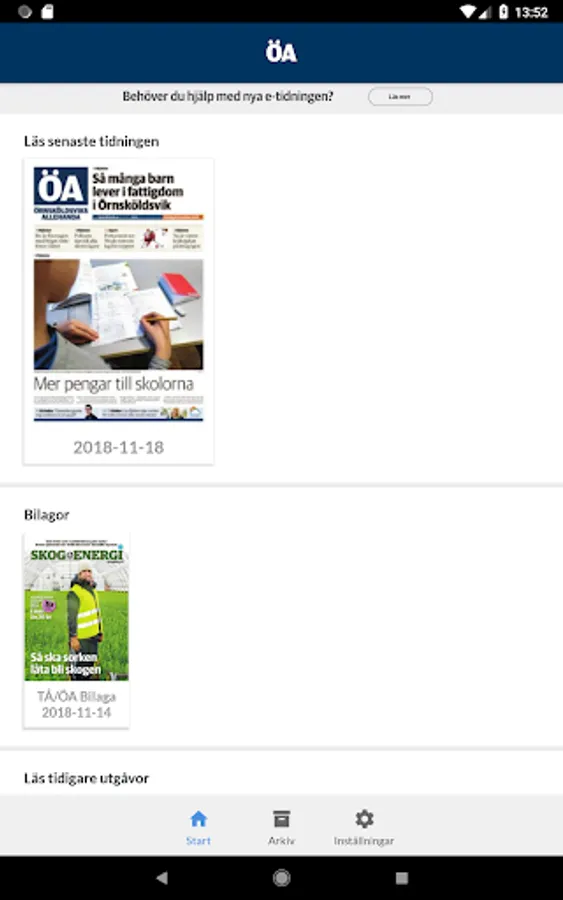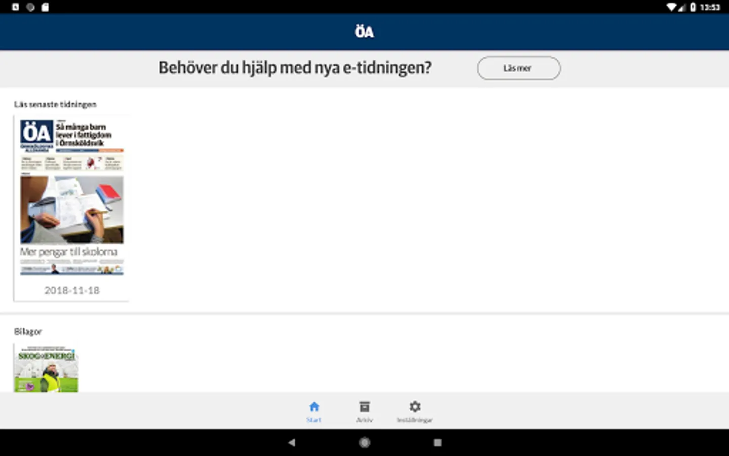In the app, you can read today's newspaper in a digital, browsable version. The app works just as well in your smart phone as in your tablet. You only need to log in to the app once per device, after which you are constantly logged in. If you want to read the e-magazine offline, you must download it first. The newspaper's articles can be opened in reading mode and articles can be read out with speech synthesis.