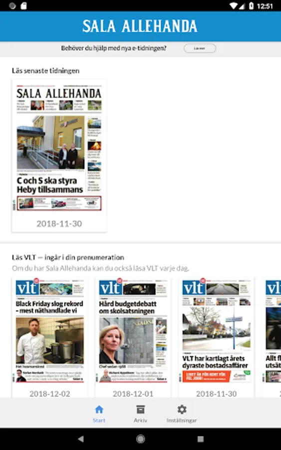 As a subscriber to Sala Allehanda, you also have free access to VLT in your e-newspaper app. And you have the opportunity to buy a cheap supplement package that gives you access to Aftonbladet's e-magazine.