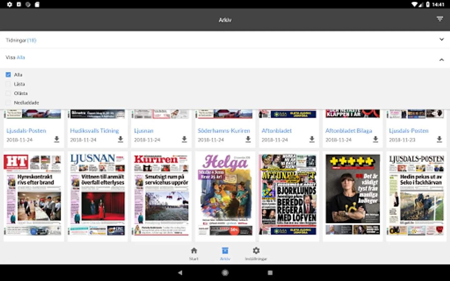 In the app, you can read today's newspaper in a digital, browsable version. The app works just as well in your smart phone as in your tablet. You only need to log in to the app once per device, after which you are constantly logged in. If you want to read the e-magazine offline, you must download it first. The newspaper's articles can be opened in reading mode and articles can be read out with speech synthesis.