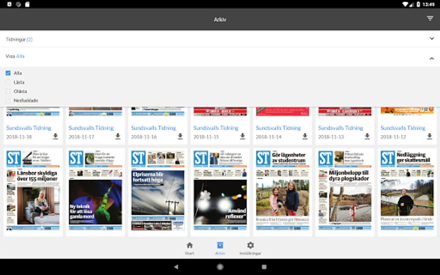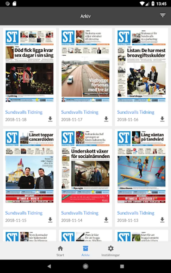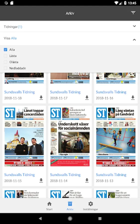 In the app, you can read today's newspaper in a digital, browsable version. The app works just as well in your smart phone as in your tablet. You only need to log in to the app once per device, after which you are constantly logged in. If you want to read the e-magazine offline, you must download it first. The newspaper's articles can be opened in reading mode and articles can be read out with speech synthesis.
