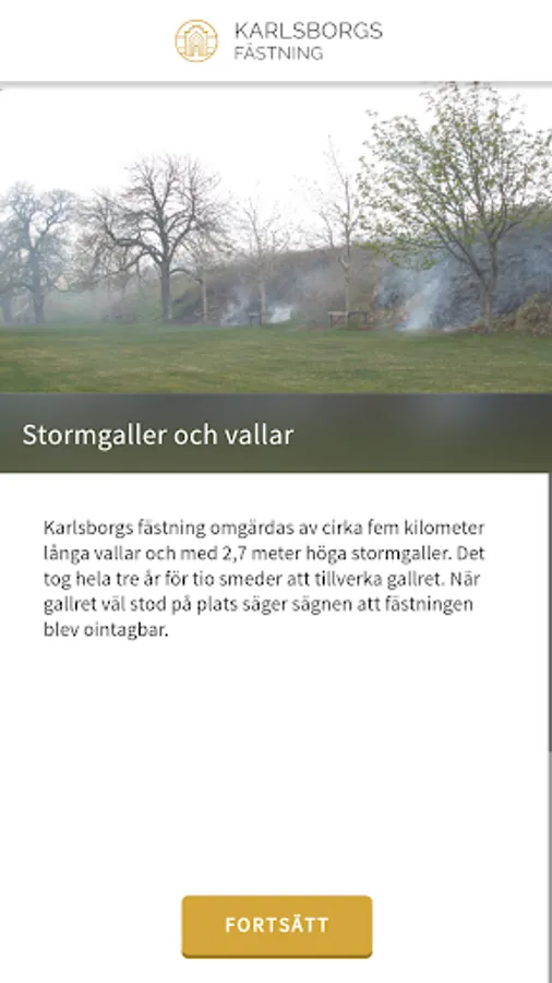 With this app you can take a tour inside the fortress of Karlsborg and make sure you do not miss any of the parts you simply must see during a visit here. At Karl's conference center just before the Gothic vault is free wifi access so you can download the app and the guided tour. You then need not be connected to the internet to be able to walk the walk.