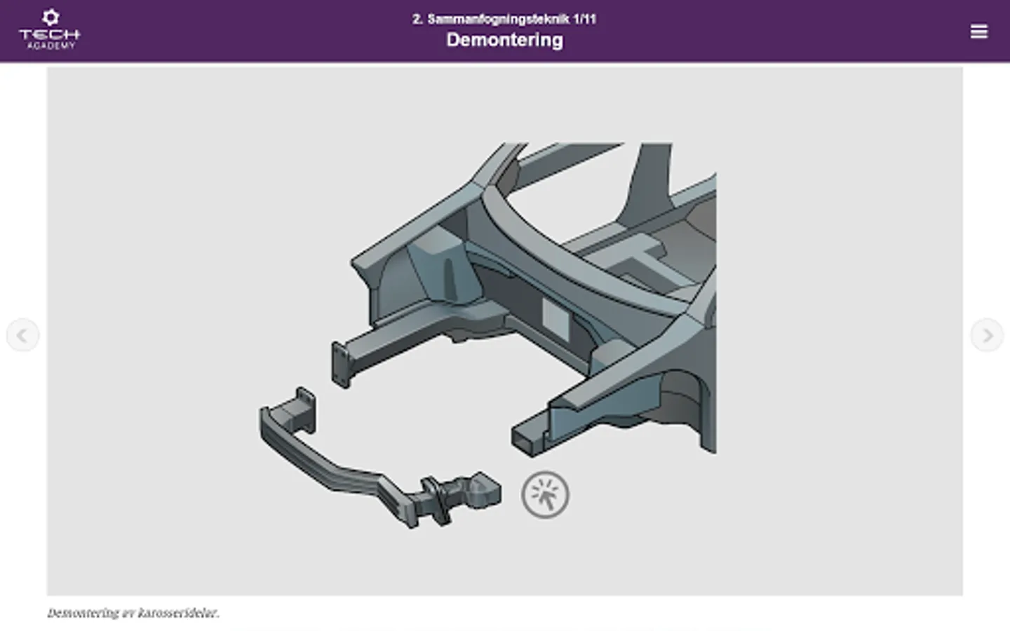 Tech Academy increases the understanding of students with their moving and interactive illustrations. The education platform generally visualizes how damage repairs on today's cars go. For a workshop, the Tech Academy is a good support in the customer conversation.