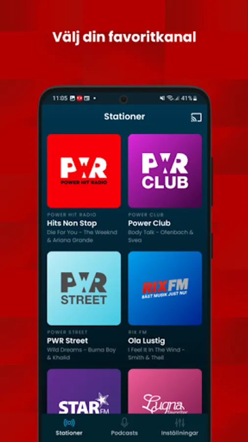 We have gathered everything from popular stations like RIX FM, Lugna Favoriter, Bandit Rock, and STAR FM to tailor-made stations like Power Club, Power Street, RIX FM Fresh, Svenska Favoriter, Star 90's, Star 80's, Bandit Metal, Bandit Classics, Indie 101, Dansbandsfavoriter, Country Classics, and more.
