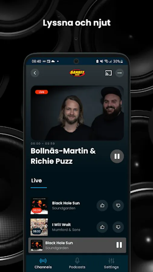 We have gathered everything from popular stations like RIX FM, Lugna Favoriter, Power Hit Radio and STAR FM to tailor-made stations like Bandit Metal, Bandit Classics, Country Classics, Power Club, Power Street, Julkanalen, Svenska Favoriter, Indie 101, Dansbandsfavoriter and more.