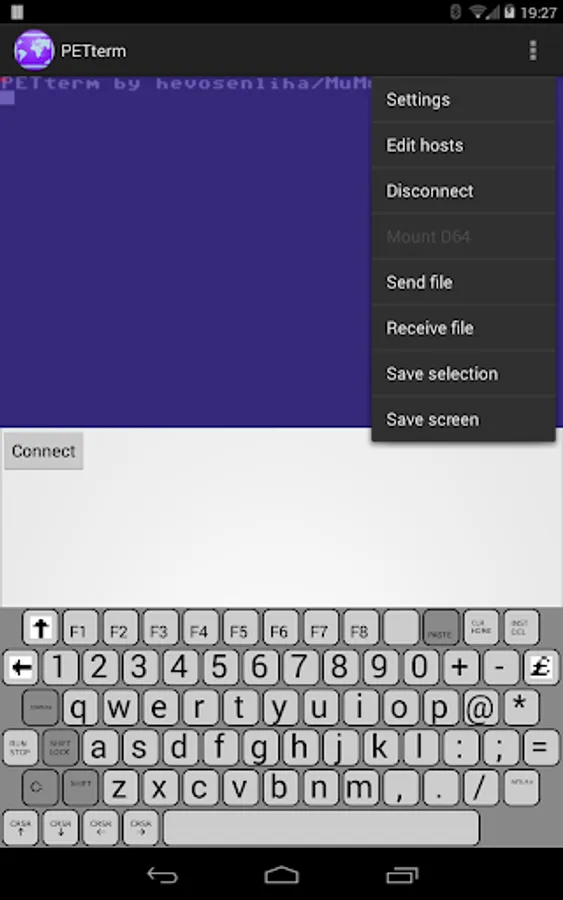 PETSCII terminal emulator telnet client for connecting to a Commodore 64 BBS such as Antidote and so on.