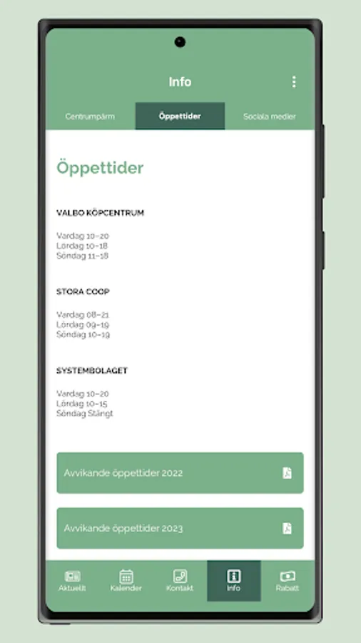 This is an app for you who work in one of the stores in the Valbo shopping center. You simply create your account and link it to the store you work in to get access to the latest information about activities in the shopping center, contact information for the stores, exclusive offers and the latest news. Simply the ultimate source of information for you as an employee when it comes to what is happening in the Valbo shopping centre.