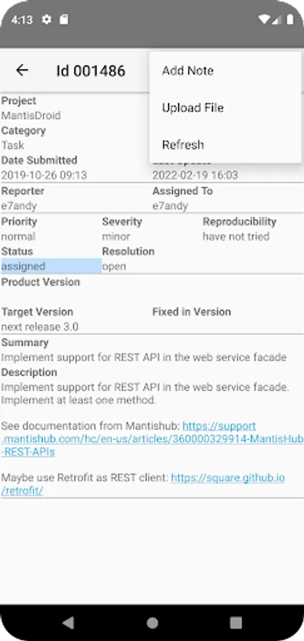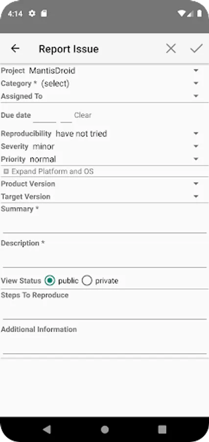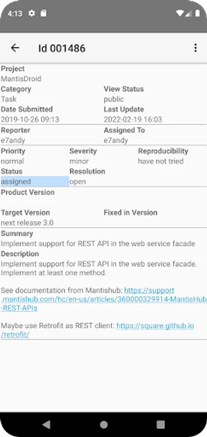 Android client for MantisBT - Mantis Bug Tracker (open source bug tracking system).
