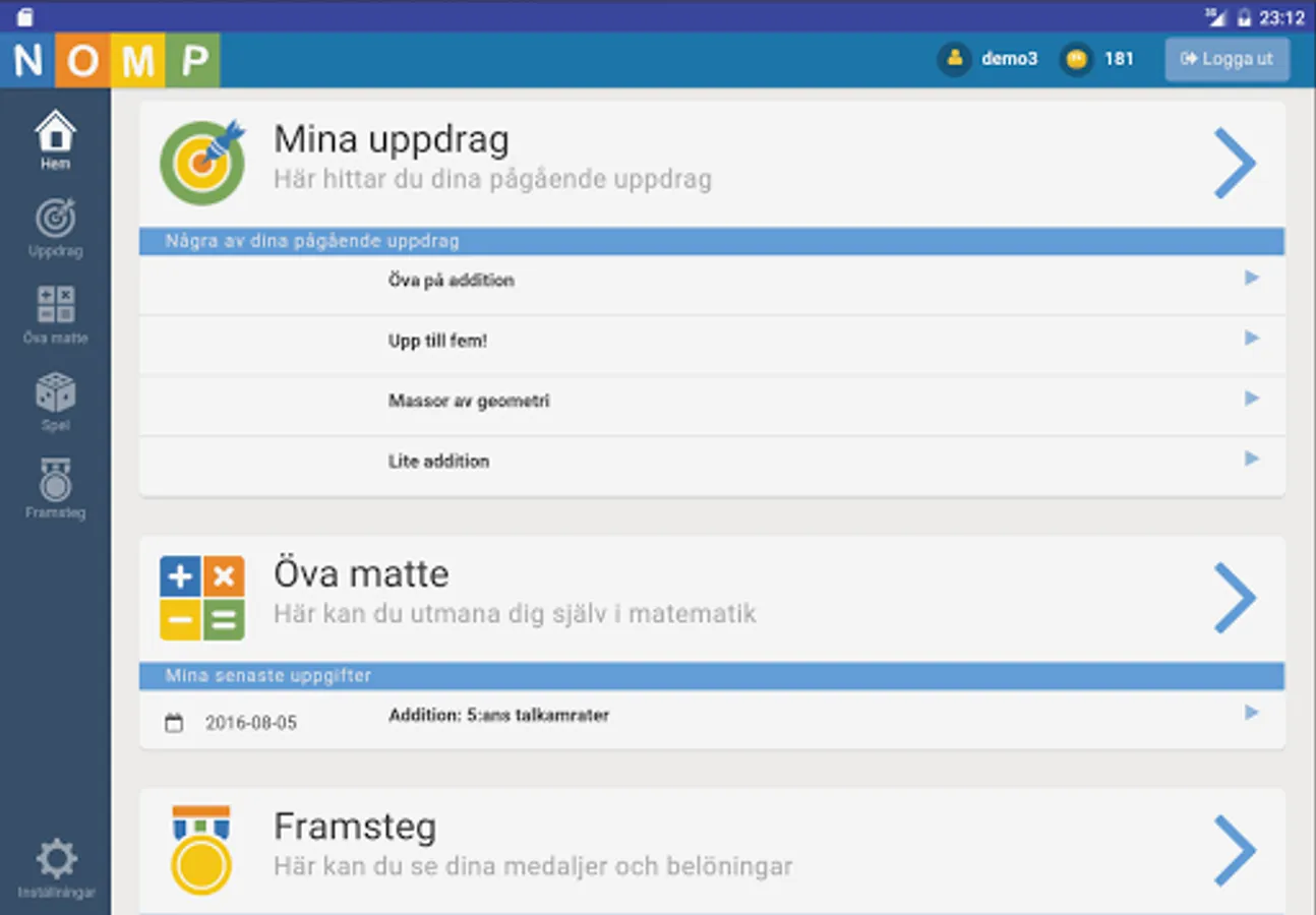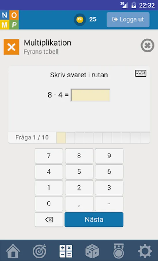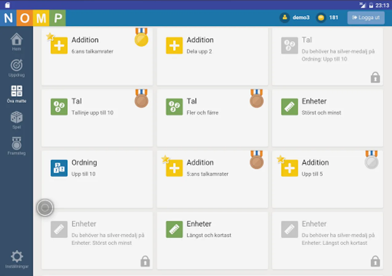 Practice math on Nomp.se. Get track of the math, earn points, medals and have fun! Free for children, great for teachers.