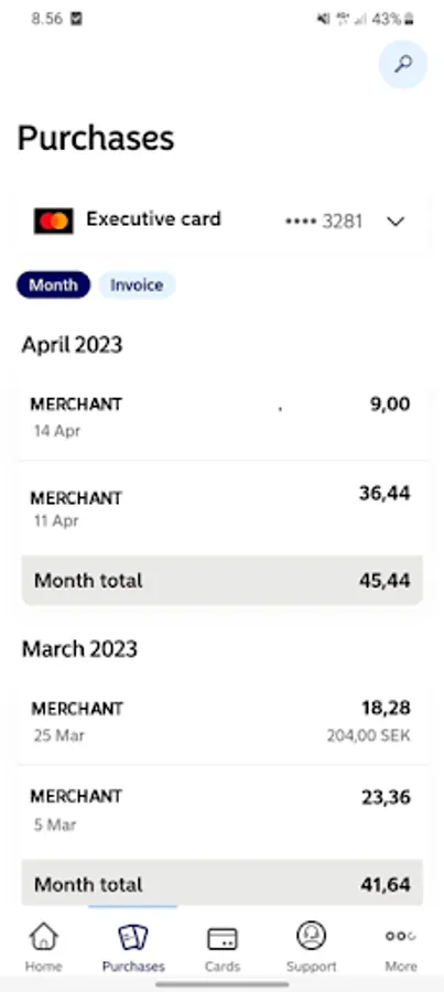 • Swedish cardholders log in with Mobile BankID