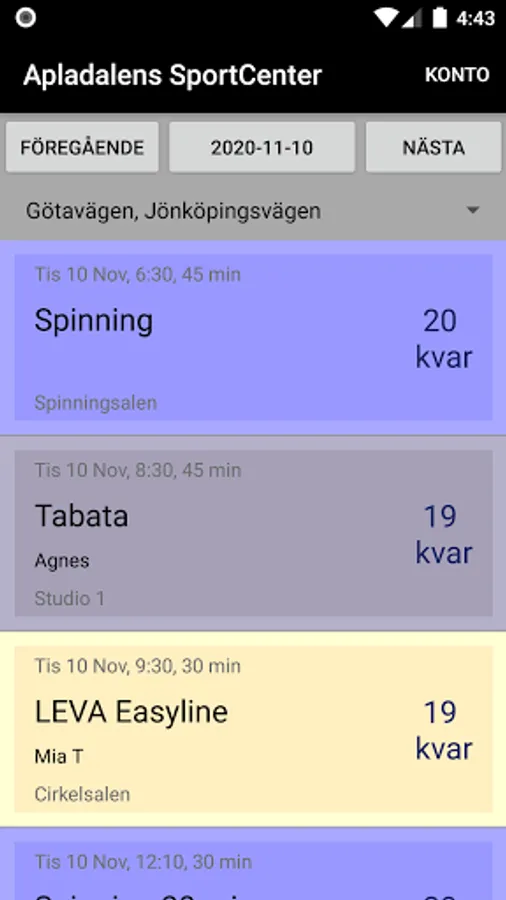This is Apladalen's SportCenter's booking app for group training.