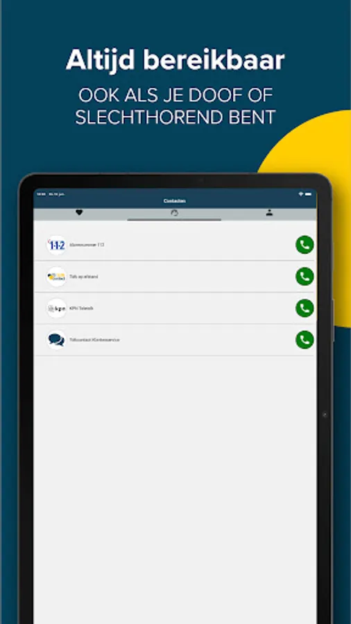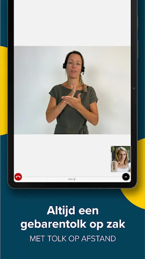 Are you deaf or hard of hearing? An account for the Tolkcontact app is reimbursed by your health insurance. Even for people who cannot use regular telephony due to a speech impairment, the use of the app is often reimbursed by the health insurance. Visit www.tolkcontact.nl/app for more information.