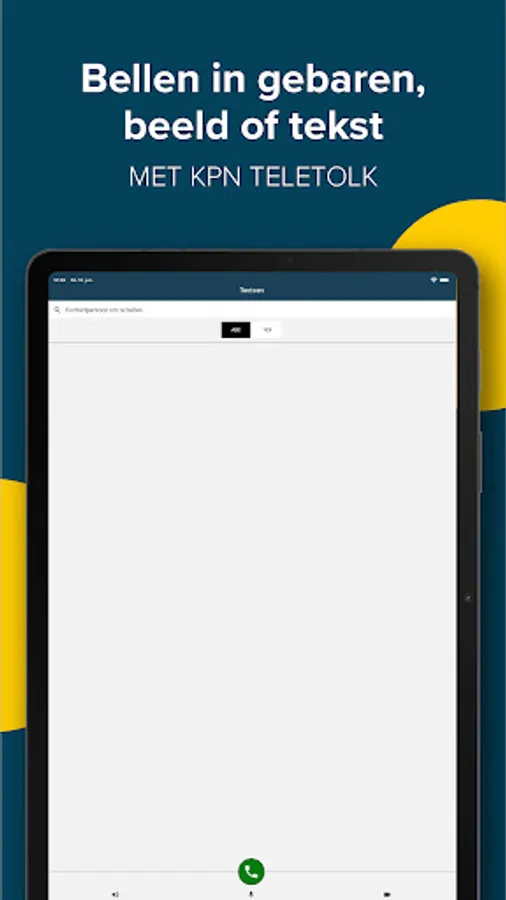 ● The app also allows you to quickly and easily call anyone you want via KPN Teletolk. You can make and receive calls. You choose in advance whether you want to call with text or with image. And if you want you can also speak during the conversation. The KPN Teletolk employee pronounces what you type or gesture. And type or gesture back what the person you are calling says.