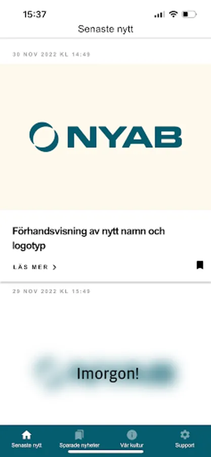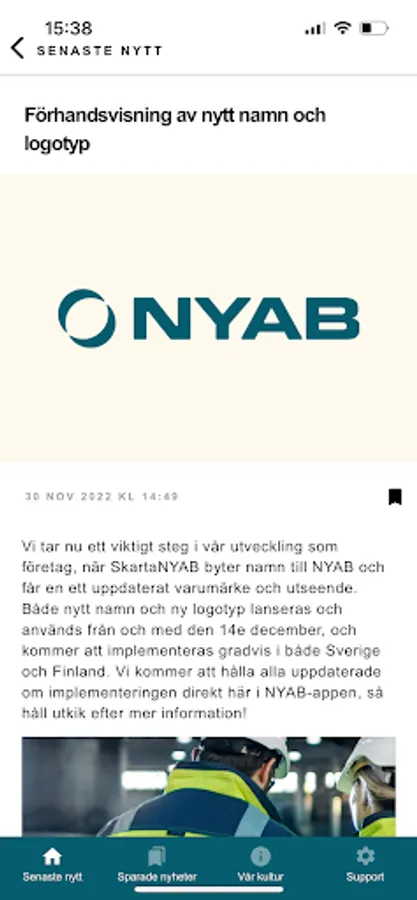 NYAB App is a central platform for information and community within the NYAB Group. The app distributes relevant information and updates on, for example, new projects and contracts, changes in the organization, new laws and regulations, and presentation of new employees and partners.