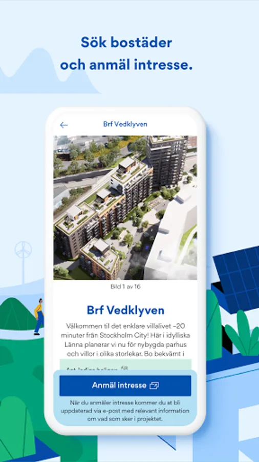 - Register your interest in all housing projects within OBOS in Sweden to get more information sent to you when the projects start to be sold with priority for members.
