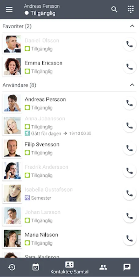 One of the most valuable features is that you do not need to keep track of your colleagues' various direct and mobile numbers. It is enough that you know the names. Your colleagues set how they want to respond with their profiles.