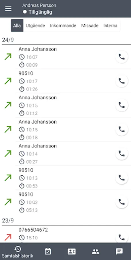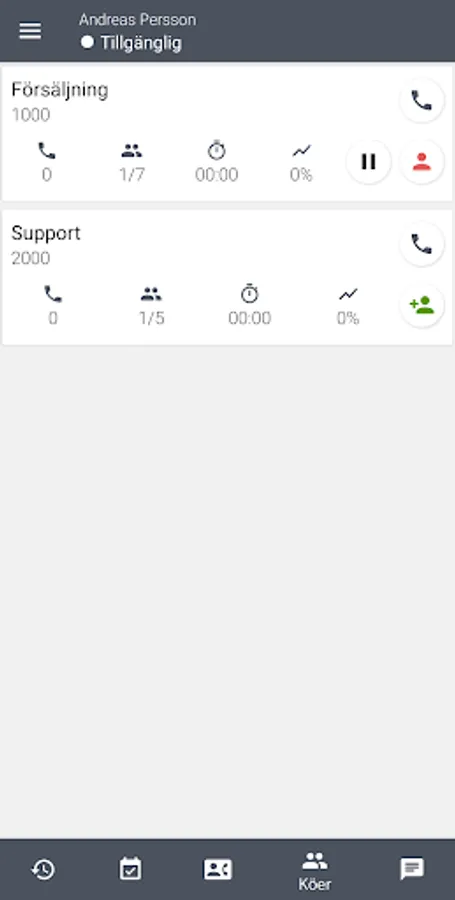 Have a look at whether your colleagues are busy or vacant so you don't have to wait unnecessarily. Log in and out of queues directly in the app.