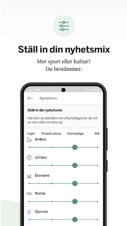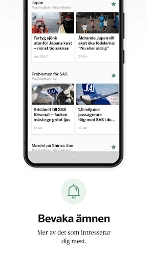 With the help of a number of smart functions, you can adapt the app to your needs. You can set your own news mix so that you get less sports and more politics, for example. You can also set up surveillance on the topics that interest you most.