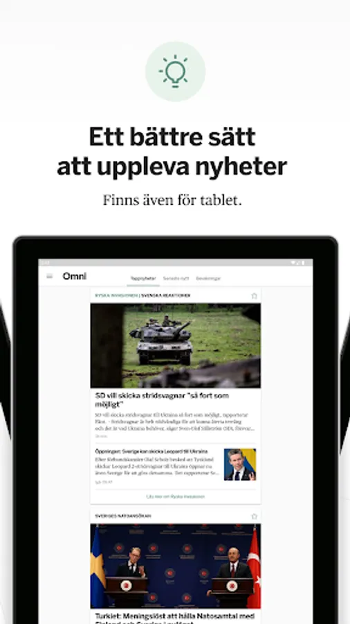 Omni gives you all the media news and perspectives in one app. Omni has been named Sweden's best news service for several years in a row and is today used by 650,000 readers. The app is free to download and use.