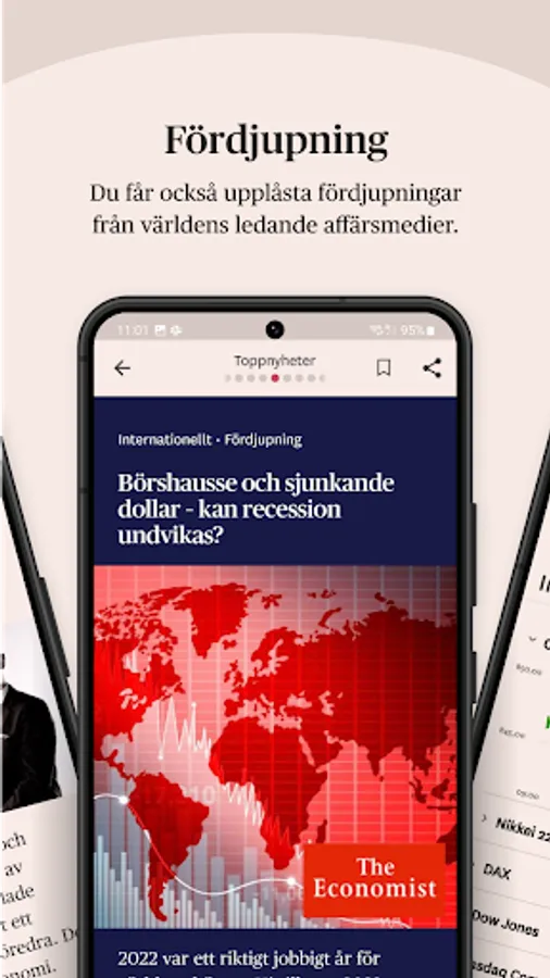 In addition, you get daily expert commentary and long reading directly in the app from, among others, the Wall Street Journal, Financial Times and The Economist. Omni Ekonomi also provides stock market analyzes from Börsplus and Börsveckan.