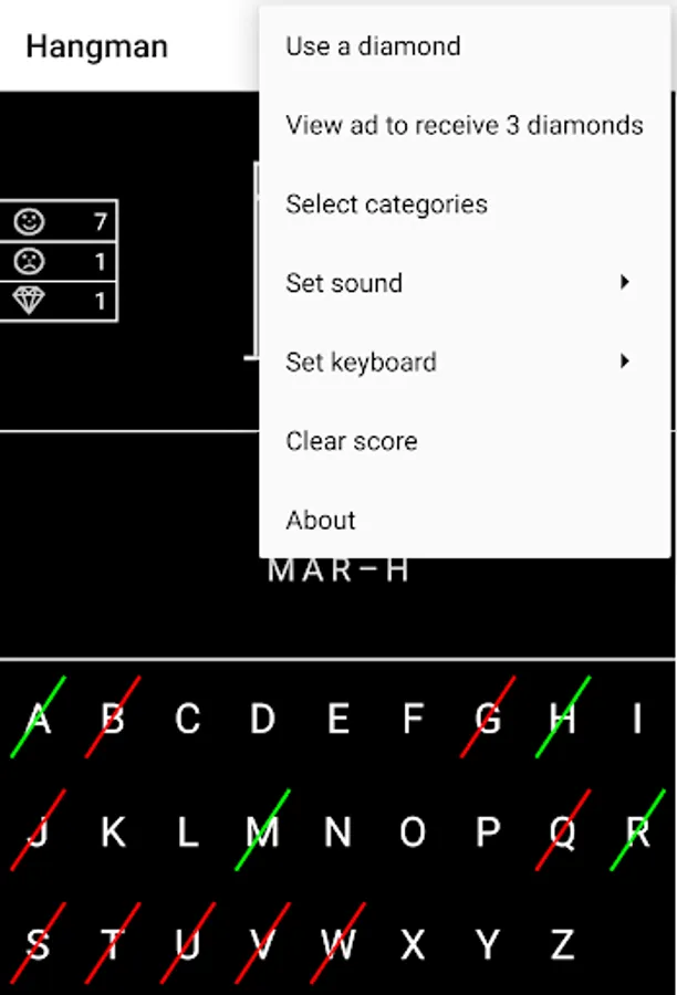 4. If you play well you can earn diamonds, which then can be used to reveal letters. Click on the diamond to reveal a letter.