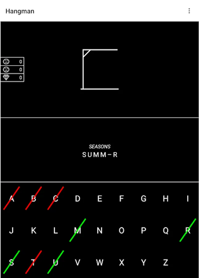 Hangman is available in English (default) and Swedish. The language is set based on the current locale of the device.