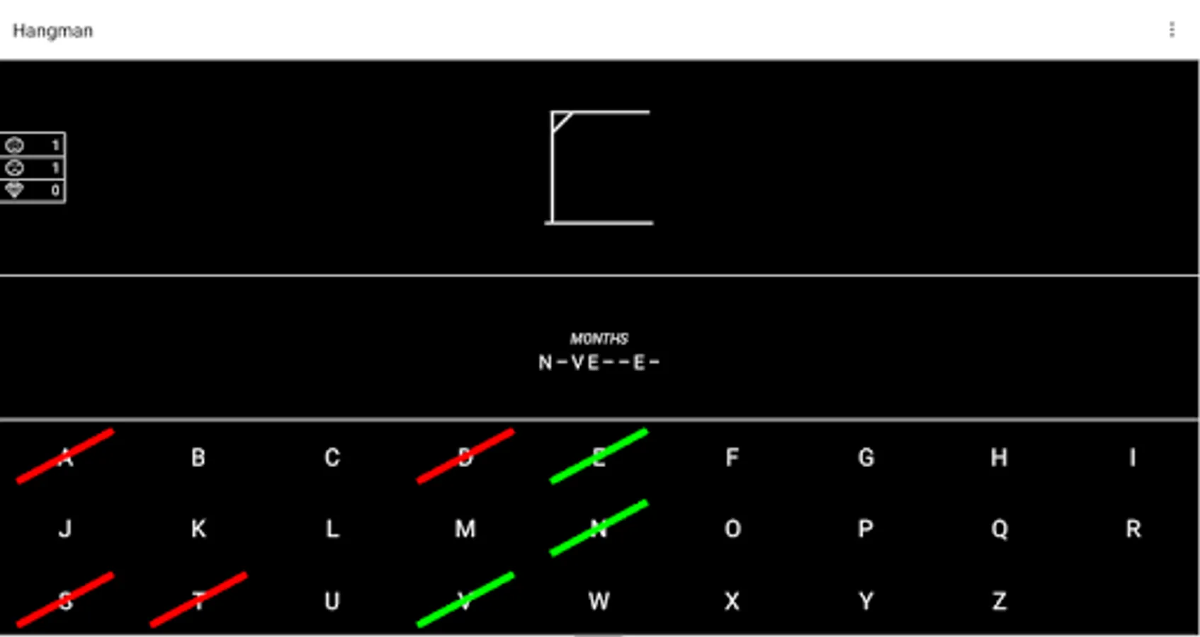 You have 10 attempts to guess the correct letters and save the poor man!