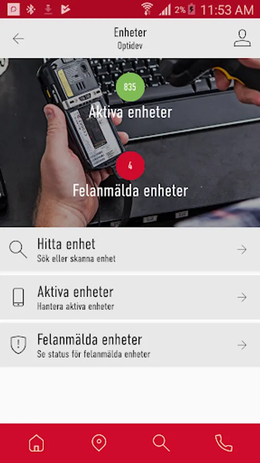 Functionality included in the True Mobile Control Center APP ice; View devices, Manage devices and Report devices as faulty.