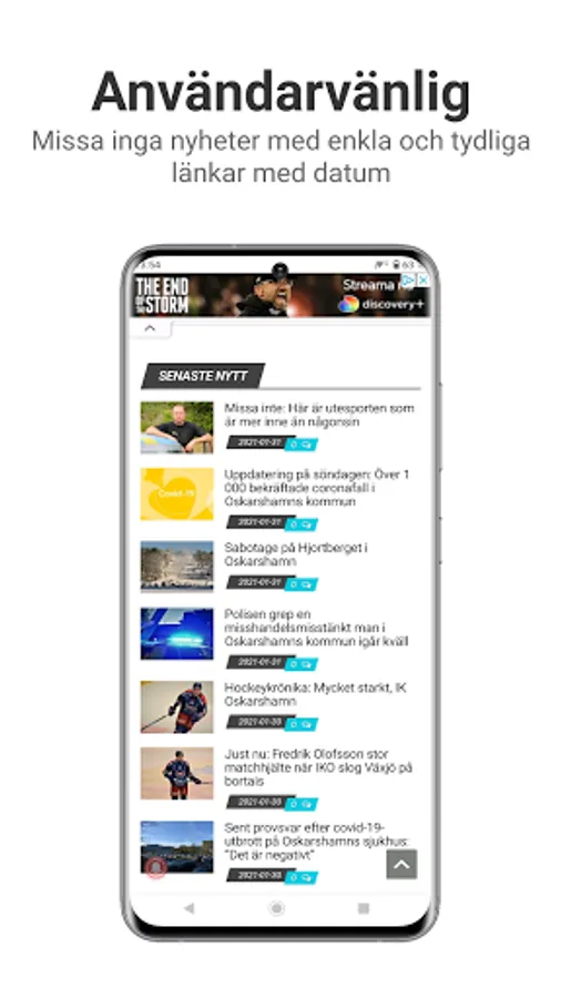 Oskarshamns-Nytt publishes local news from Oskarshamn municipality as well as sports, chronicles, submitters and much more every day of the year. No paywalls but all news is free to read. You can choose if you want push notifications and you will receive a notification on your mobile when we publish something new. Just click the red clock to enable or disable the notifications.