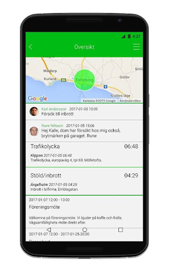 The technology behind CoYards enables individual neighbors, contact agents, tenant-owner associations, tenants' associations and more to communicate important information to a few selected neighbors or to all neighbors in an entire area. For example, you may need emergency help, crime-related incidents, reports of vandalism, calendar events or important information from authorities. The built-in contact function allows users to communicate and help each other without the need for updated telephone numbers and e-mail addresses.